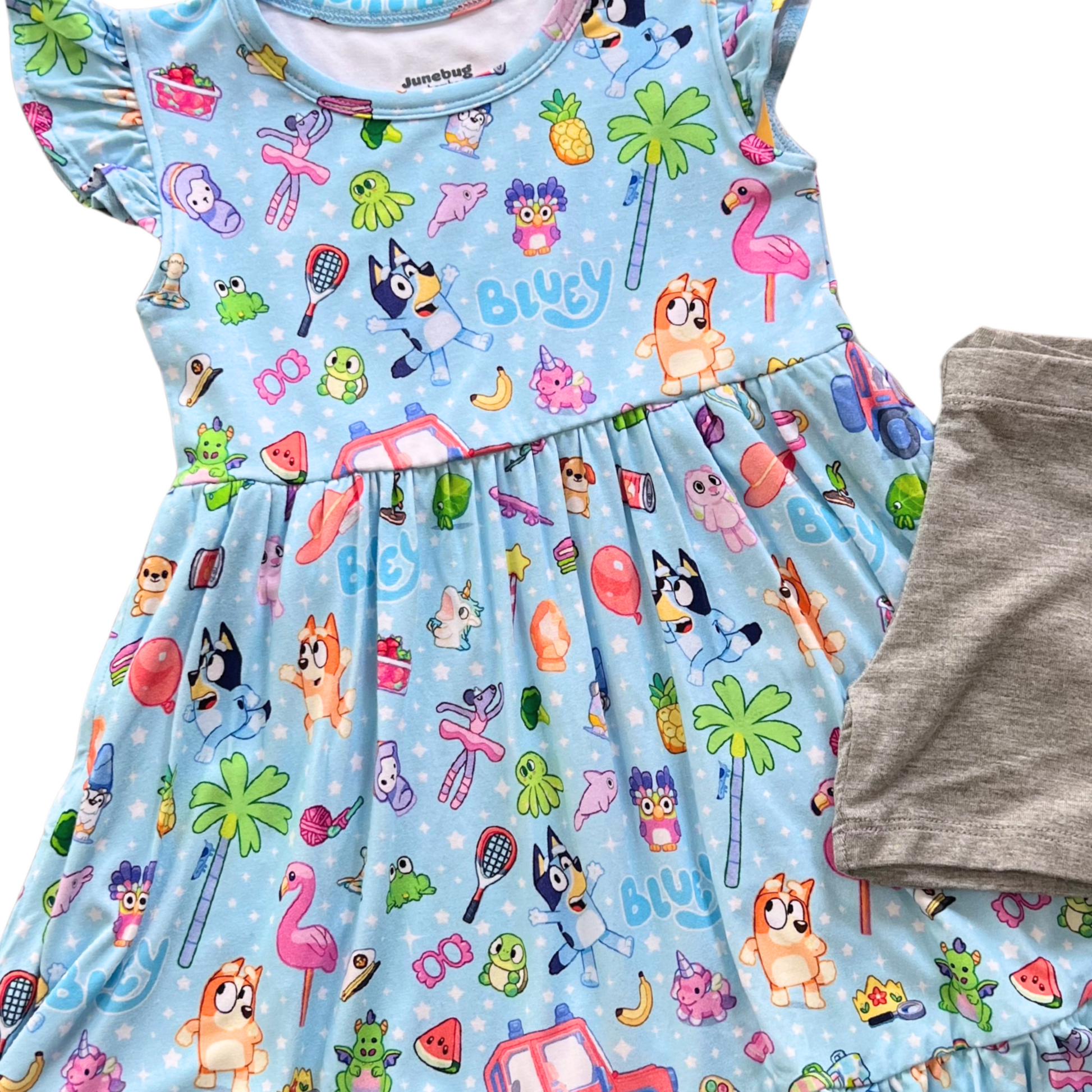 Tails & Trinkets Bamboo Short Sleeve Ruffle Twirl Dress